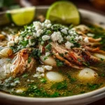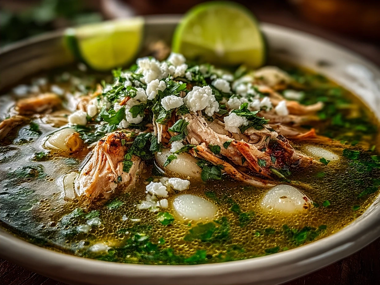 Experience the rich flavors of traditional Mexican cuisine with this Authentic Crockpot Chicken Pozole Verde, a hearty and comforting slow-cooked soup featuring tender chicken, hominy, and vibrant green tomatillo broth.