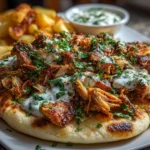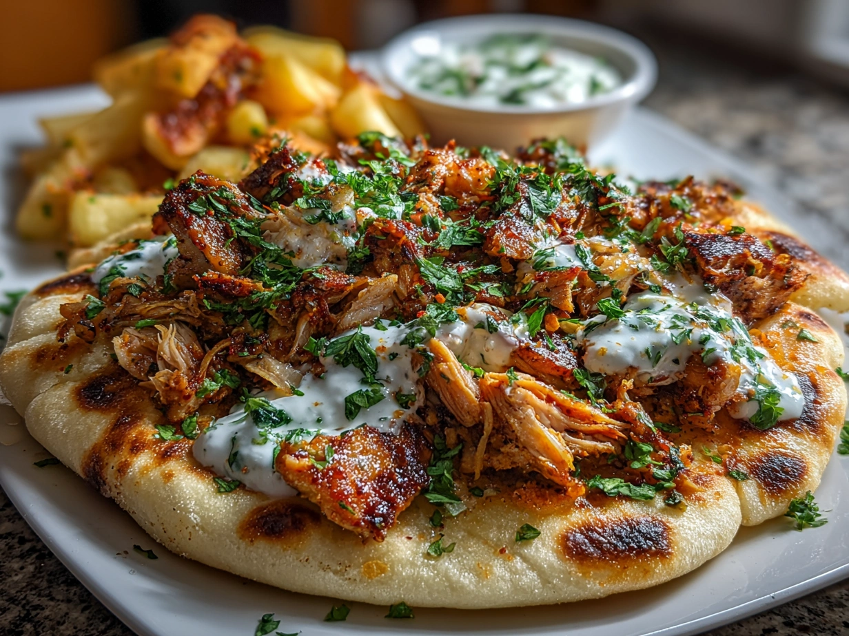 This chicken shawarma recipe features tender, marinated chicken cooked to perfection with aromatic spices, served in warm pita bread for a delicious Middle Eastern treat.