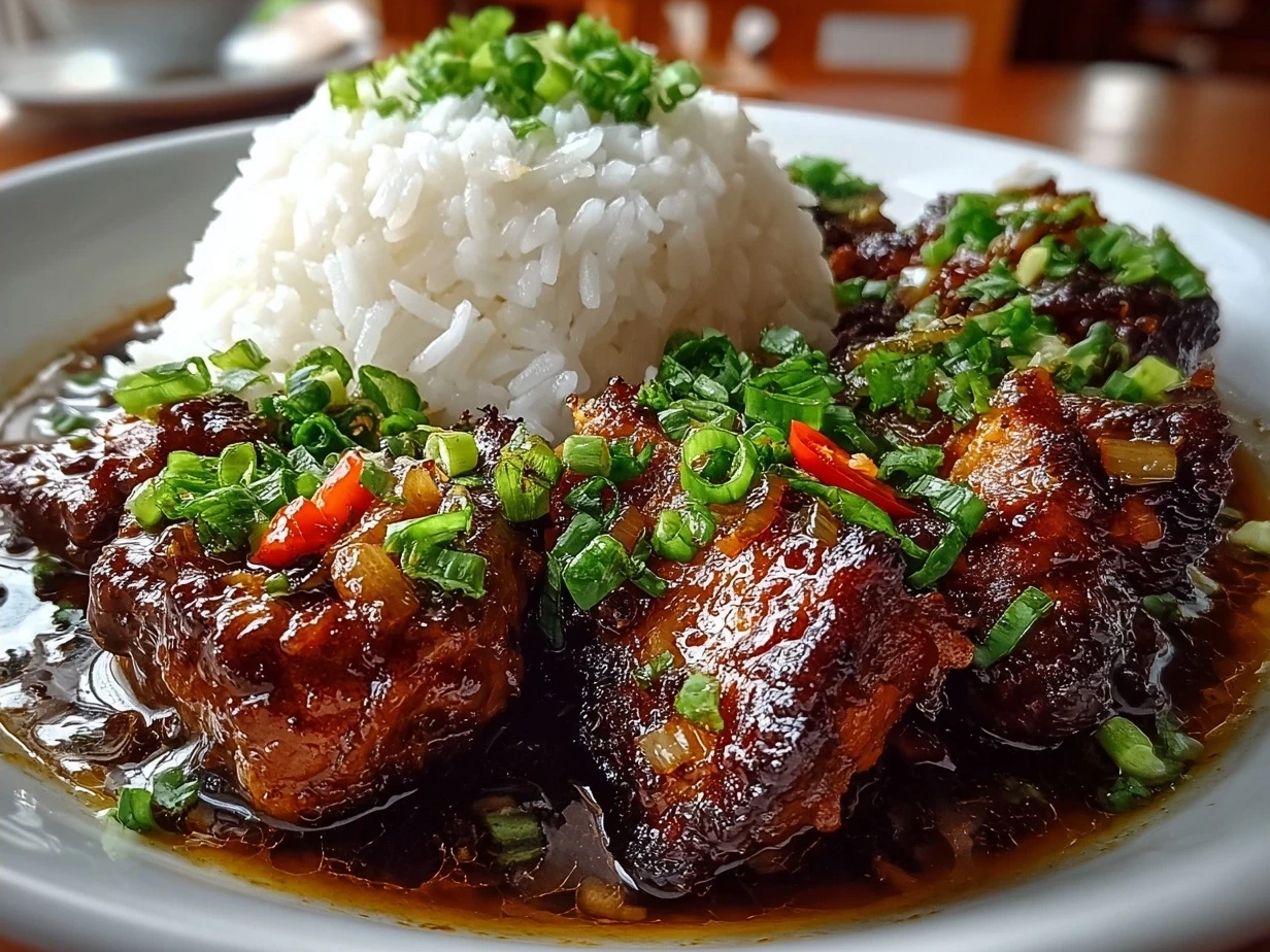 Filipino Chicken Adobo is a classic tangy and savory stew made with marinated chicken simmered in vinegar, soy sauce, garlic, and spices for a rich, comforting flavor.