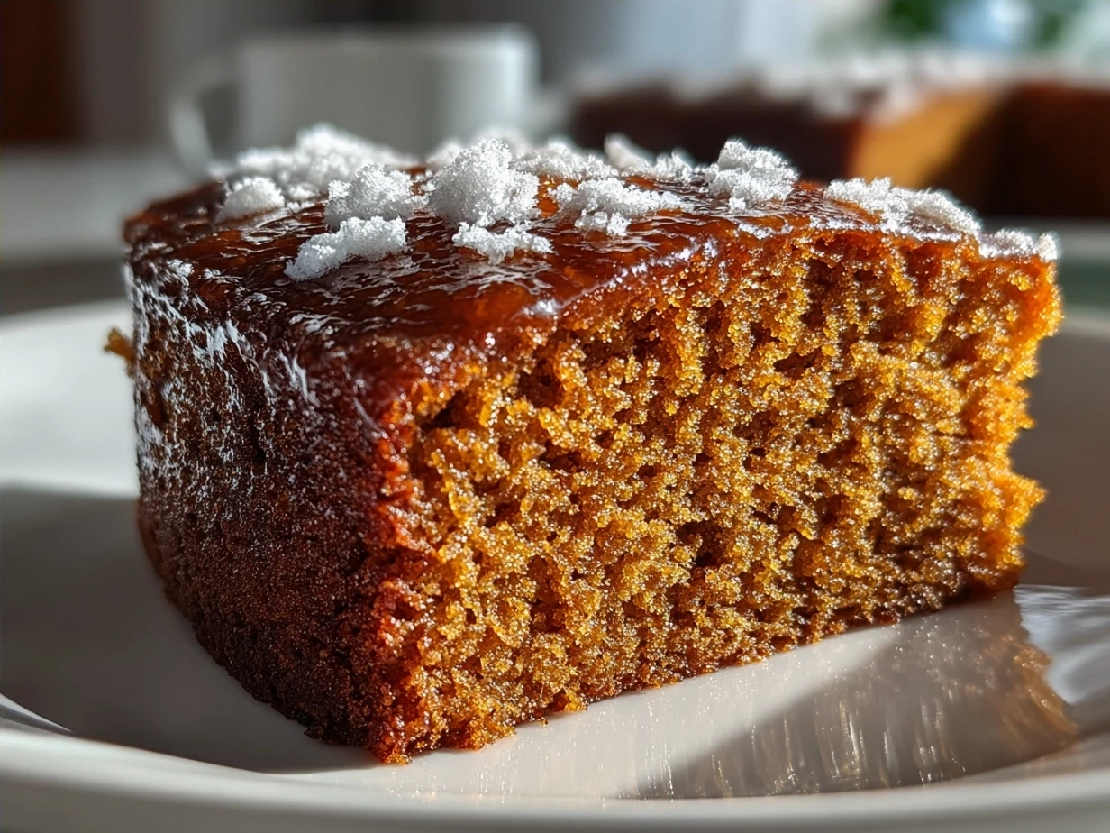 A warm and spiced gingerbread cake with molasses and aromatic ginger, perfect for cozy gatherings and festive occasions.