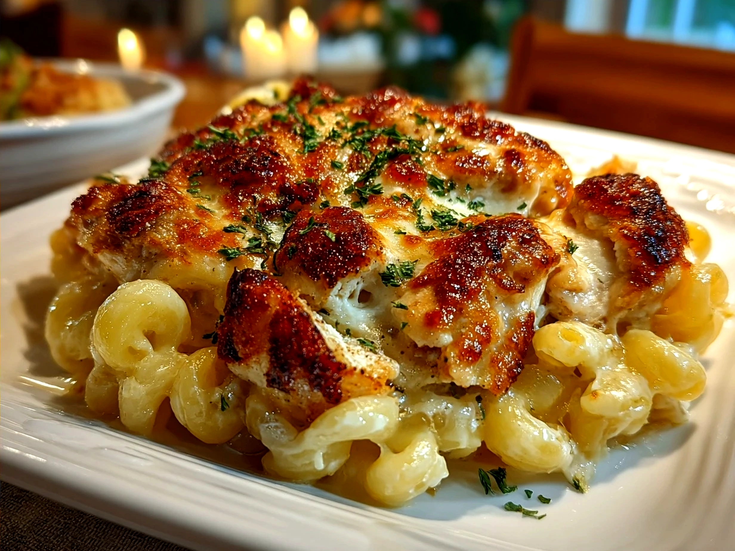 Once your Honey Pepper Chicken Mac and Cheese is out of the oven, it’s ready to be the star of the dinner table. My family loves pairing it with something fresh like a crisp green salad or some roasted veggies to balance out the richness.