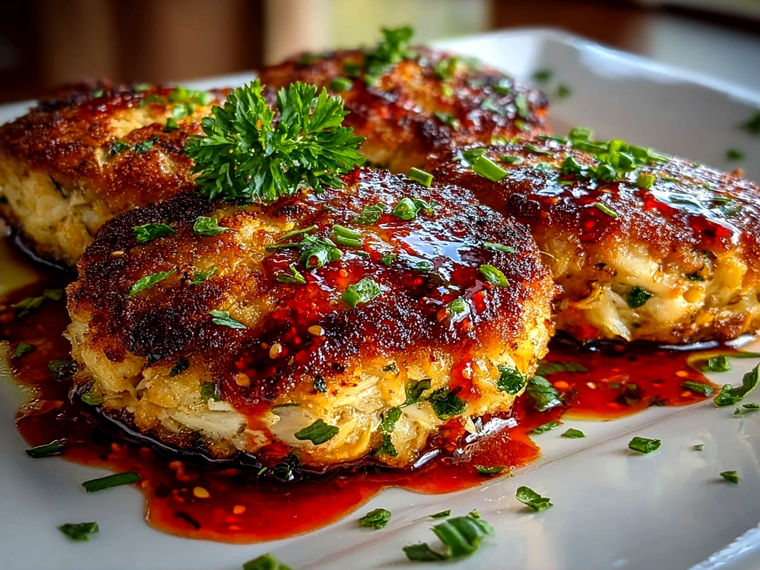 Classic Maryland crab cakes feature lump crab meat seasoned with Old Bay and lightly pan-fried to golden perfection, delivering a crispy exterior and tender, flavorful interior.
