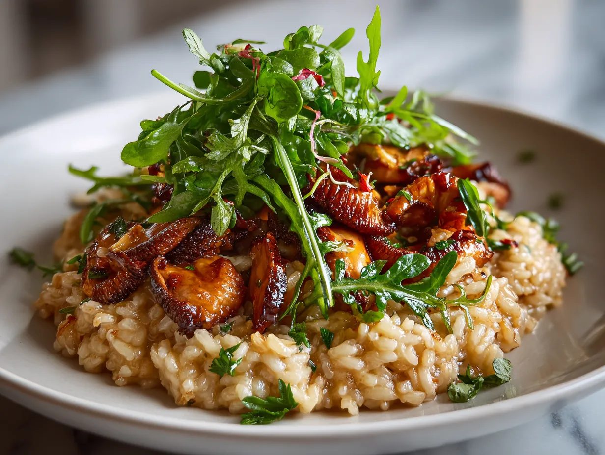A creamy, comforting mushroom risotto featuring rich arborio rice and earthy mushrooms, perfect for a cozy Italian-inspired dinner.