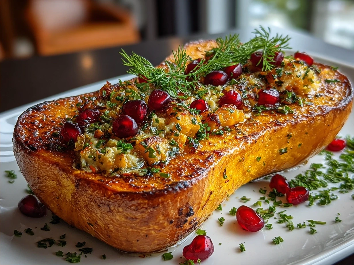 A festive and wholesome dish featuring roasted butternut squash filled with symbolic simanim ingredients, perfect for celebrating tradition with a nutritious twist.
