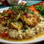 Smothered Chicken Rice is a comforting one-pot meal featuring tender chicken thighs cooked in a rich, savory gravy served over fluffy rice. Perfect for a hearty dinner, this dish combines bold flavors and simple ingredients for a satisfying experience.
