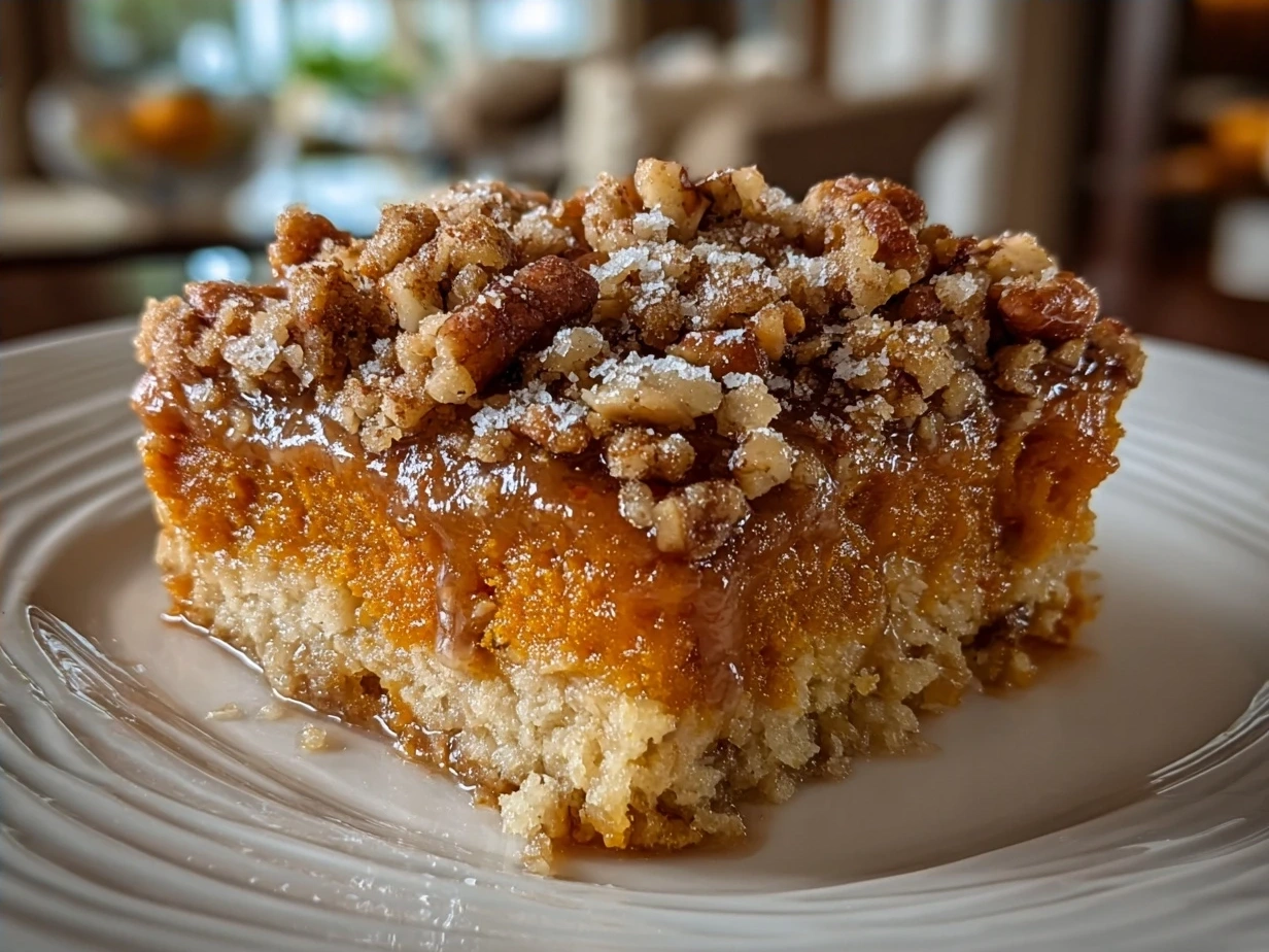 - Sprinkle the pecan mixture evenly over the sweet potato layer.