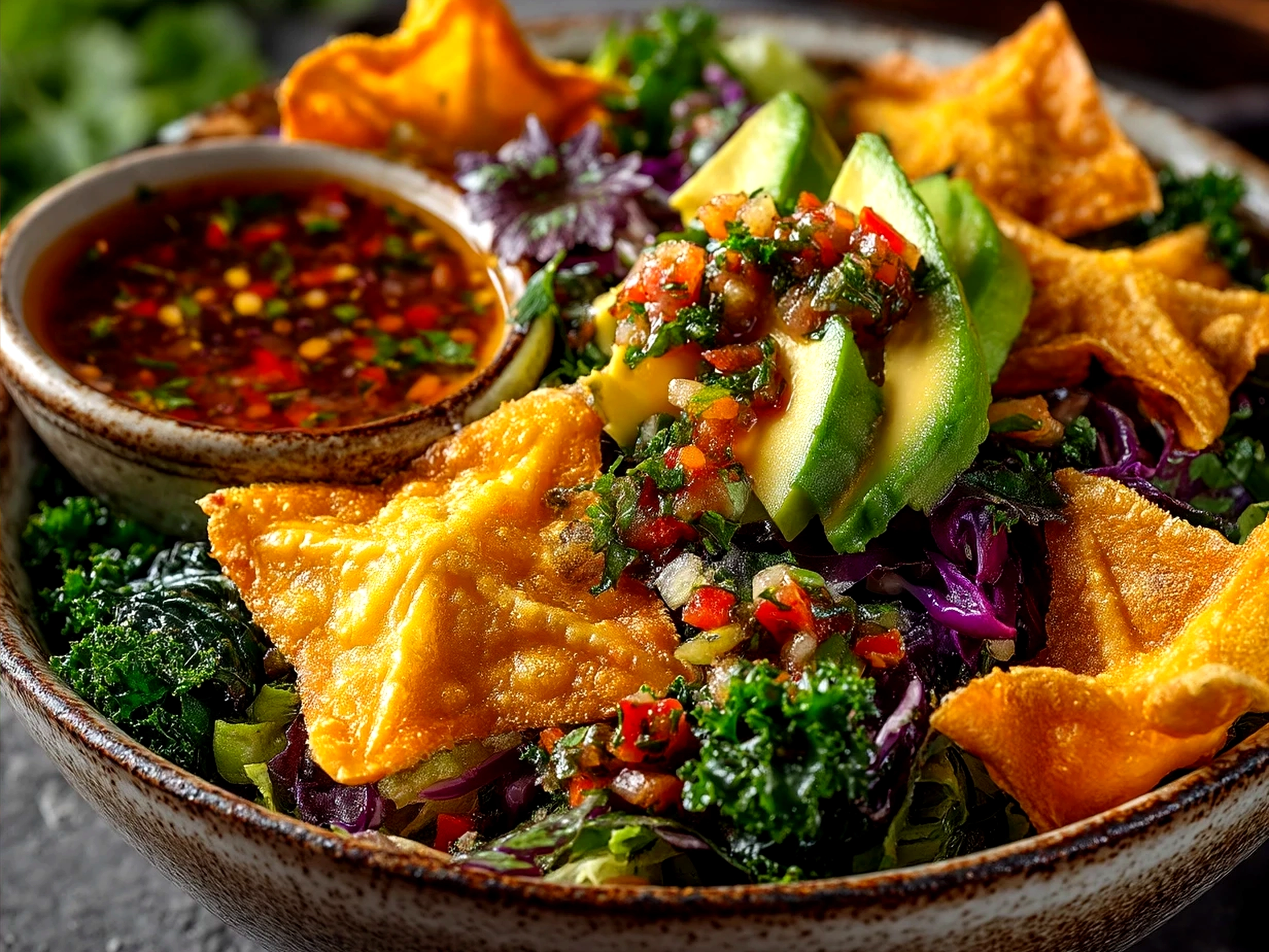 4. Assemble the Winter Salad In a large bowl, toss the shredded kale or mixed winter greens with the roasted vegetables, red onion slices, and cherry tomatoes. Add the diced avocado just before serving to keep it fresh and creamy. Pour the fresh homemade salsa over the salad and mix gently to avoid mashing the avocado.